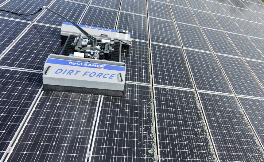 Mit dem Flechtenentferner bringt hyCLEANER ein System auf den Markt mit dem robotergestützt auch besonders hartnäckige Verschmutzung wie Flechten von Solaranlagen beseitigt werden können.